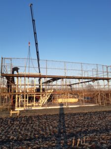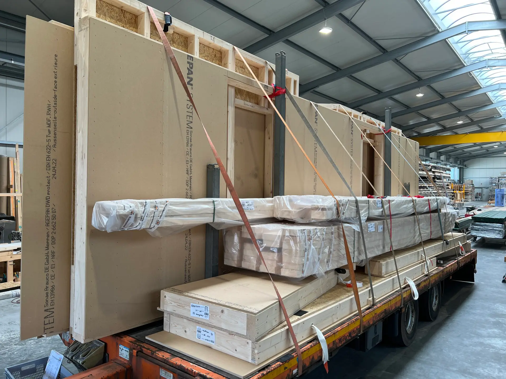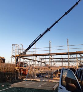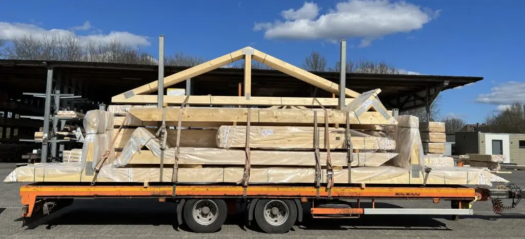 Wenn wir zur Baustelle kommen, kann ihr Handwerker anfangen zu arbeiten. Gerne bieten wir Ihnen unterstützend eine Kranleistung als Richthilfe an. Bitte sprechen Sie uns an.